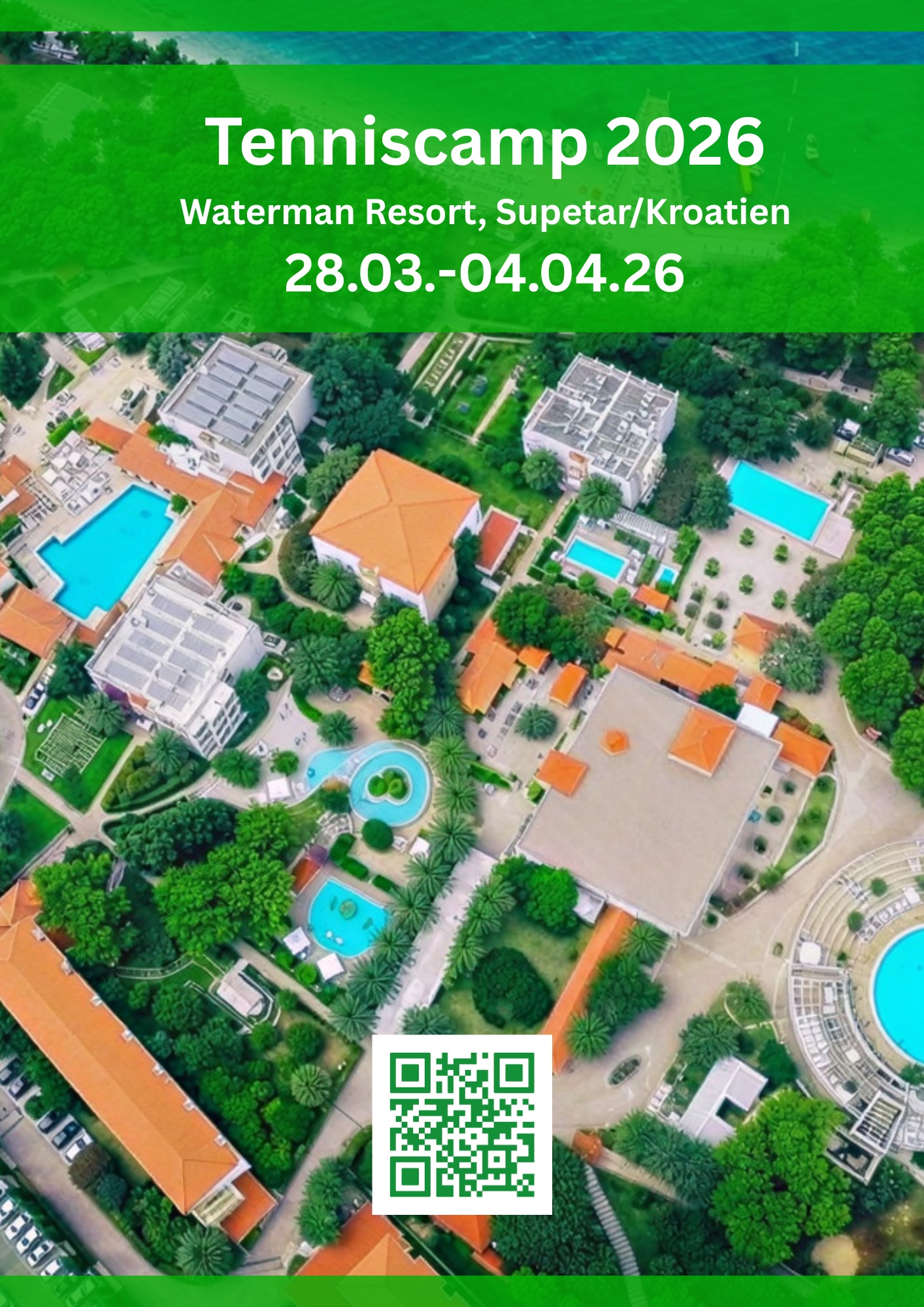 Unsere Trainer laden auch 2026 wieder zu einer gemeinsamen Tennisreise nach Kroatien ein. In den Osterferien geht es vom 28.03. bis 04.04.2026 ins Waterman Resort nach Supetar – eine wunderschöne 4****-Anlage mit All-inclusive-Verpflegung, mehreren Pools, Fitnessraum, Spa und topgelegenen Tennisplätzen.