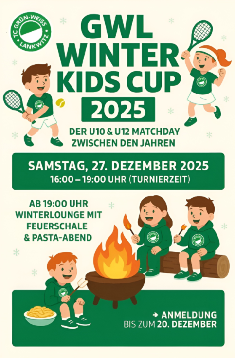 Vor dem Jahreswechsel wird’s für unsere Jüngsten noch einmal richtig sportlich! Am Samstag, 27. Dezember treten die U10- und U12-Kids beim GWL Winter Kids Cup an. Das genaue Format steht noch nicht fest – ob als internes Turnier oder als kleiner Vergleich mit benachbarten Vereinen –, aber sicher ist: Es gibt echte Matches mit jeder Menge Spaß!