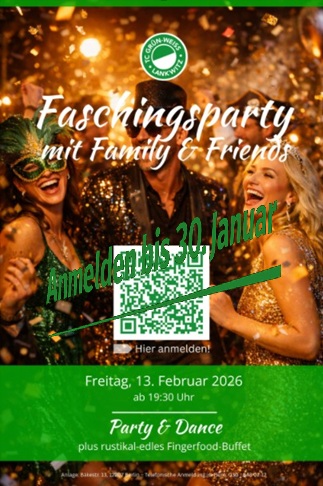 Am Freitag, 13. Februar, steigt im Clubhaus, wie angekündigt, die GWL-Faschingsparty. Dazu laden wir Euch herzlich ein.